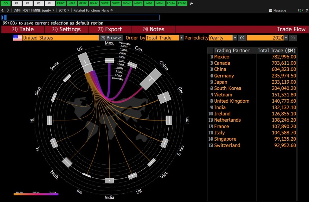 If you hover over any particular trade flow, Bloomberg will display relevant data.