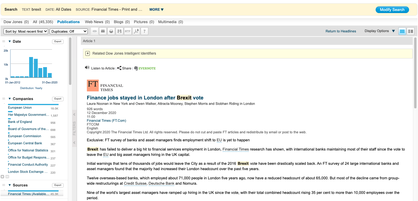 If you are looking for Financial Times articles, look no further than Factiva! But be aware, there is a one-month embargo on content which means the most recent month is unavailable online.