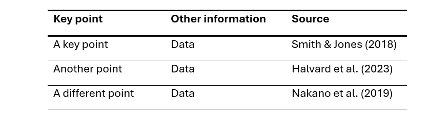 If you have read our previous APA7 post on Referencing … tables, you will know how to cite a table of data taken from another source, but when you are creating a new table which incorporates data gathered from different sources, you must cite all the sources used. You can do this by following one of the approaches below: