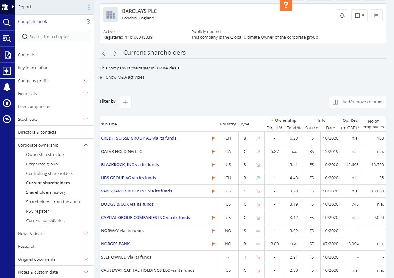 Public Ownership gives information about the institutions, companies, and other holders of publicly-listed companies and is sourced from public filings. Where filings are made public for private companies with public debt, this data is available too. Use the tabs to browse to different areas.